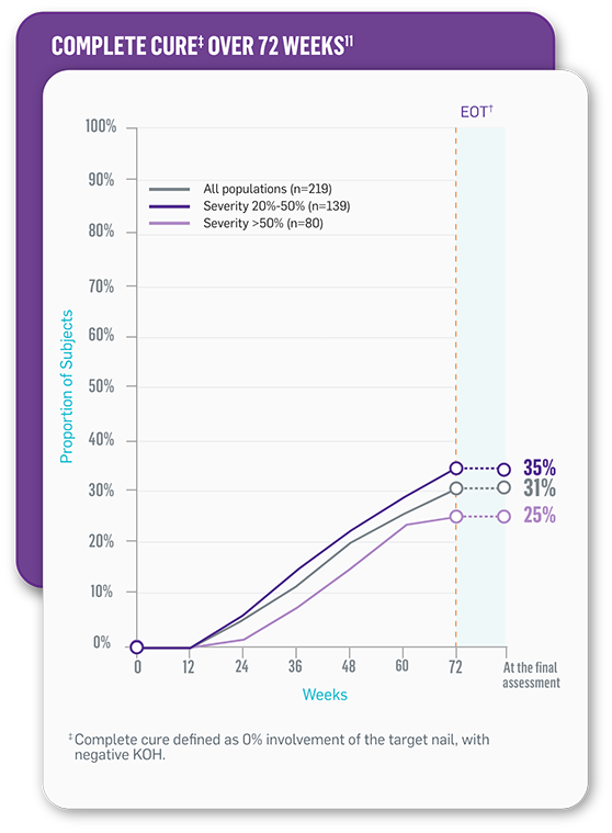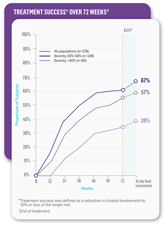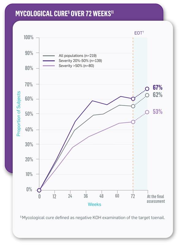 References: 1. Iozumi K, Abe M, Ito Y, et al. Efficacy of long-term treatment with efinaconazole 10% solution in patients with onychomycosis, including severe cases: a multicenter, single-arm study. J Dermatol. 2019;46(8):641-651.